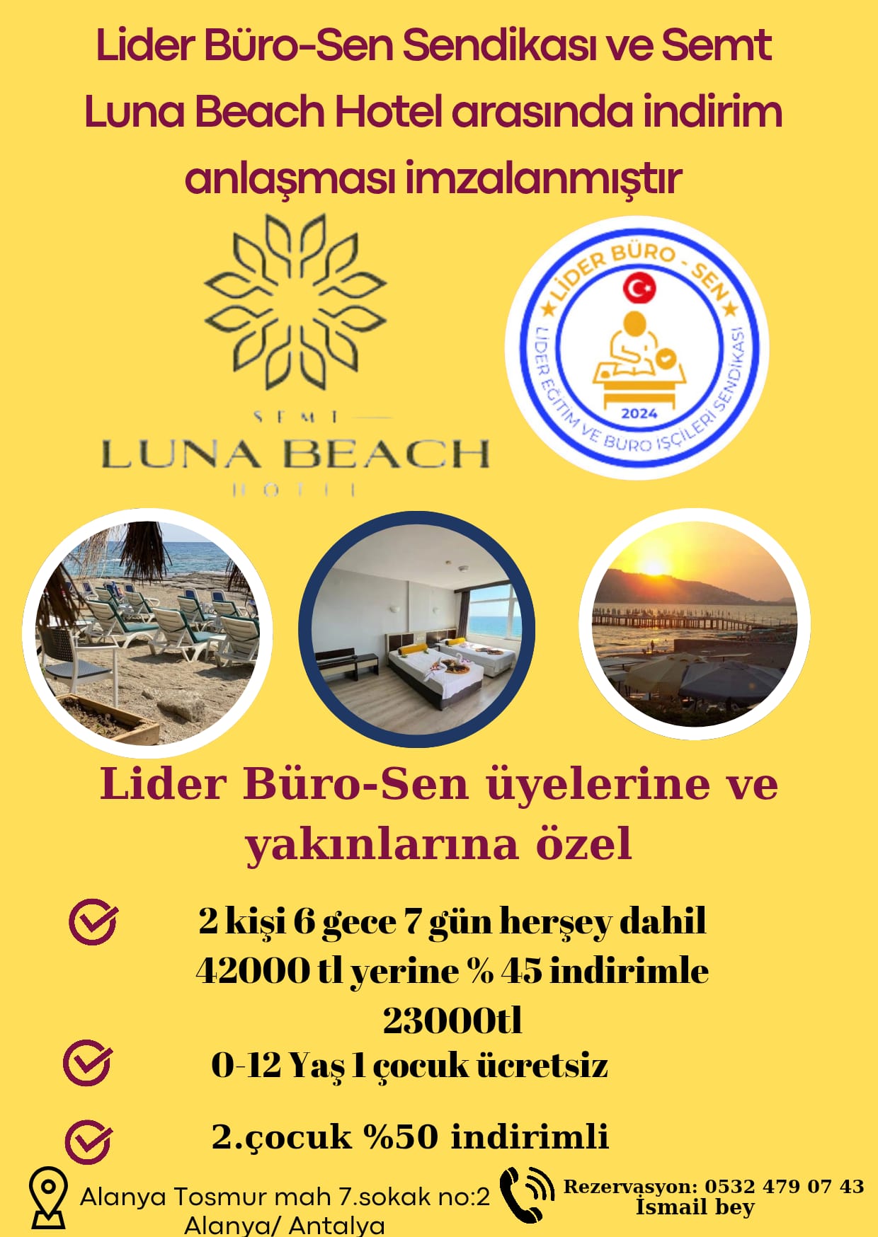 ARASINDA İNDİRİM SÖZLEŞMESİ İMZALANMAŞTIR,İNDİRİMDEN ÜYELERİMİZ VE 1.DERECE YAKINLARI FAYDANALACAKTIR. ADRES:Cumhuriyet Mah. Cengiz
