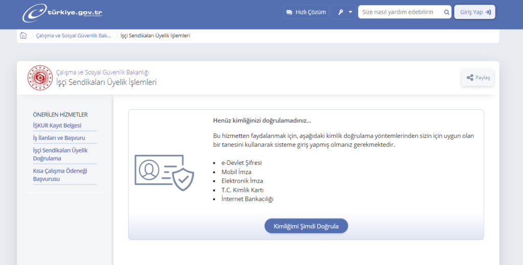 E-Devlet Kapısı üzerinden sendikamıza Üyelik işlemi yapabilirsiniz.